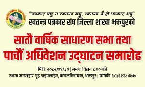 Home » Sample Page » भक्तपुर । स्वतन्त्र पत्रकार संघ जिल्ला शाखा भक्तपुरको अध्यक्षमा रेणुत्वानाबासु सहित सात सदस्यीय नयाँं कार्यसमिति निर्वाचित